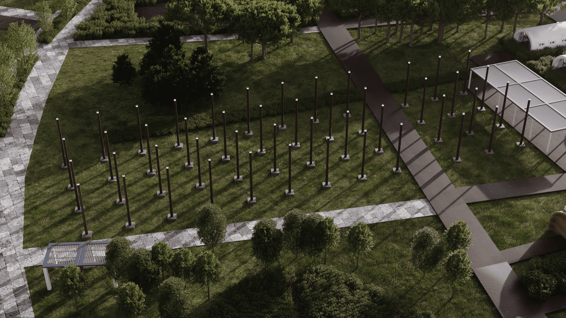 하야리아부대 안에 남아있던 나무 전봇대를 재활용하여 태양광 조명을 설치함으로써